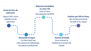 Vous recevez l’intégralité du montant sous 6 jours ouvrés. Oney gère les remboursements et le risque.